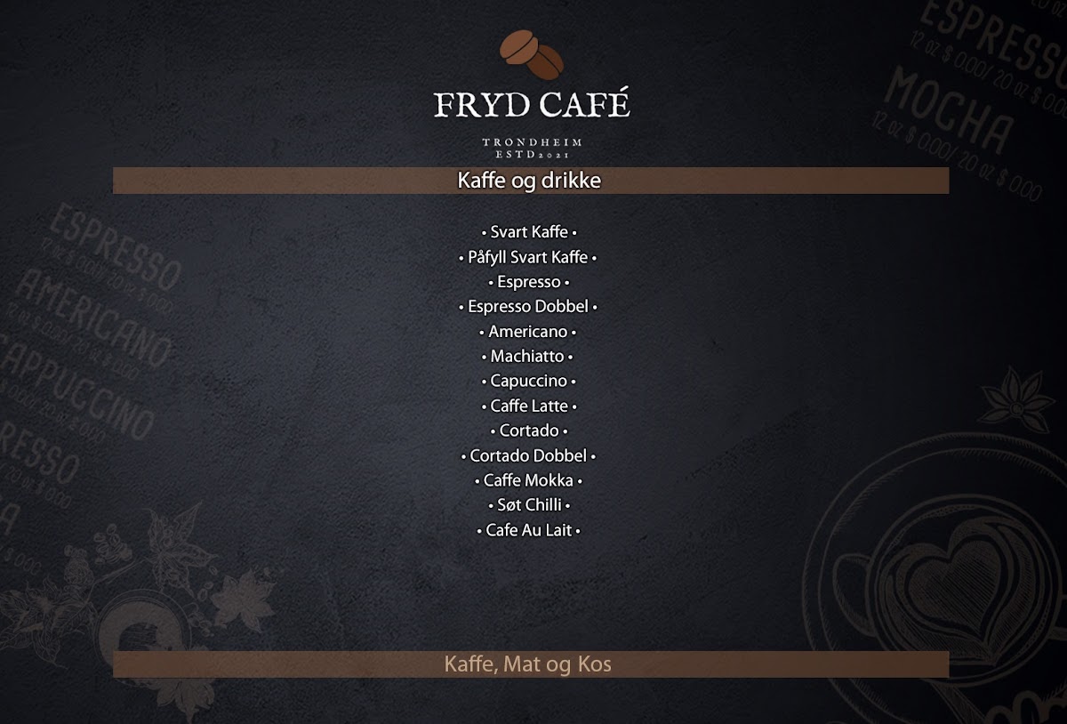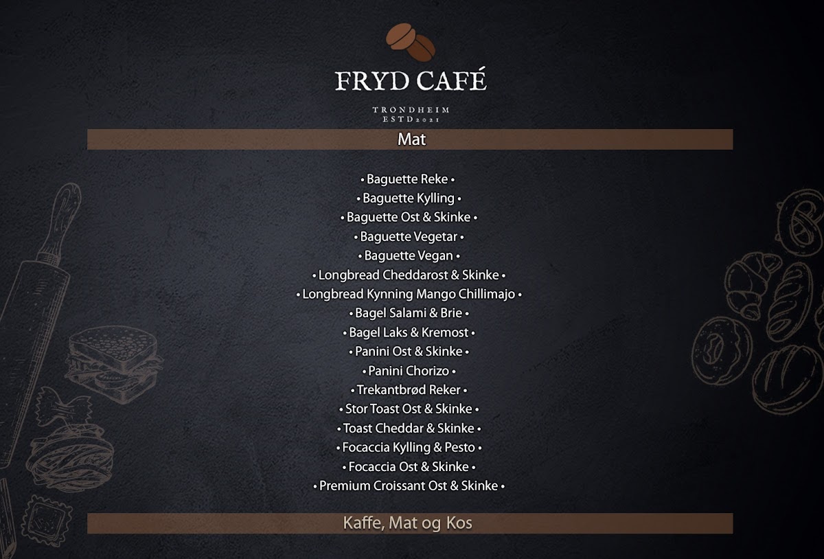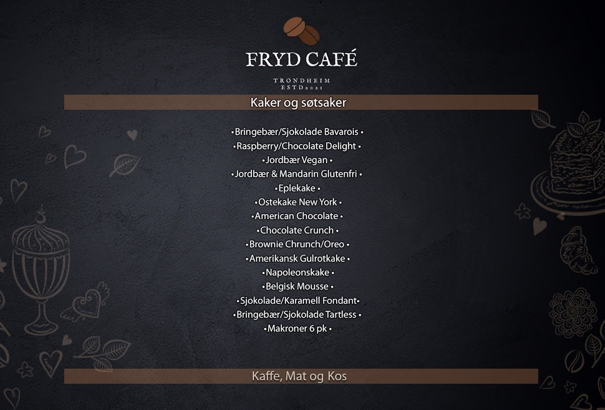 Welcome to Fryd Cafe, a delightful culinary gem nestled in the heart of Trondheim at Nordre gate 15. This inviting cafe offers a diverse menu that appeals to both sweet lovers and savory enthusiasts alike.